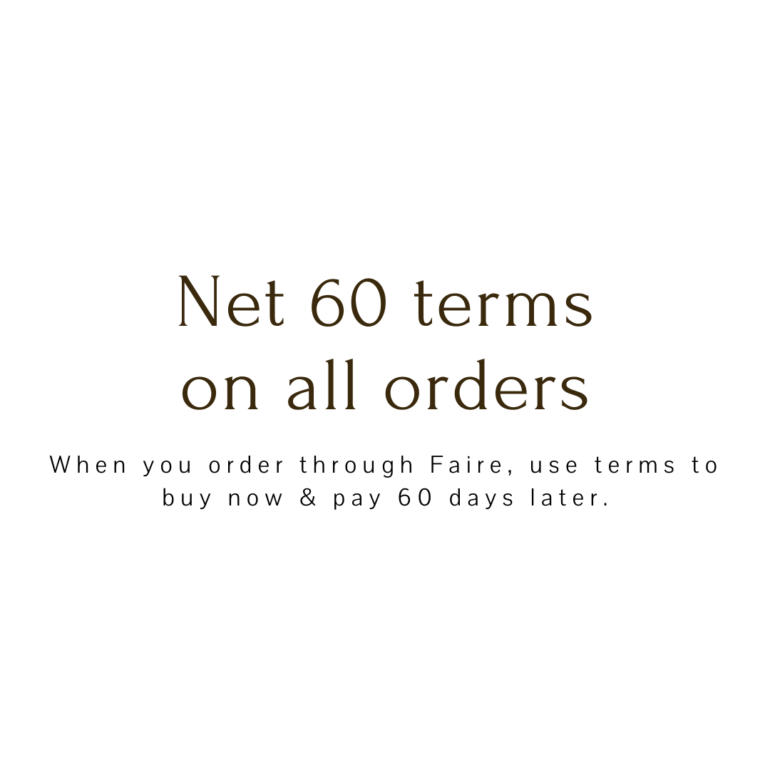 We’ve partnered with Faire to sell our wholesale products online. Join Faire today to shop our line and get 200€ off and 1 year of free shipping.*